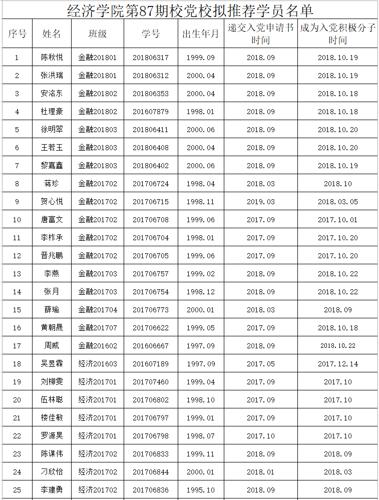 第87期校党校即将开课,现将我院拟推荐学员名公示如下。