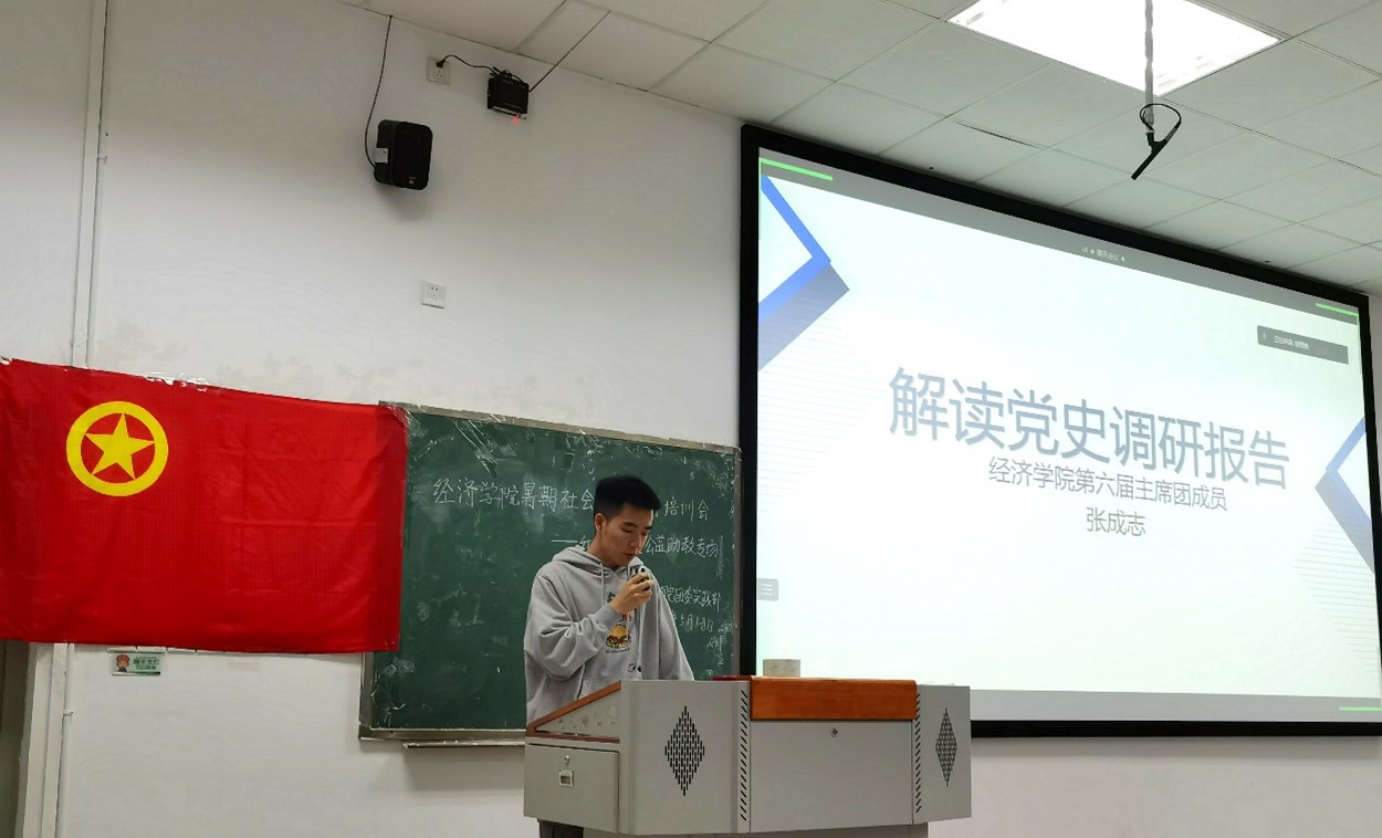 张成志同学强调了学好“四史”——党史、新中国史、改革开放史、社会主义发展史的重要性,号召同学们认真学习党史团史,将自身专业与“四史”相结合,担负起新时代青年的使命与担当。
