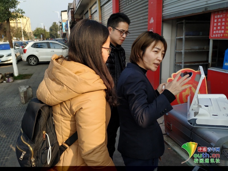 下午三位实习生跟随银行网点的两位工作人员来到西南财经大学后街安装来聚财APP,作为新手,实习生们首先是观摩银行的专业人员的安装流程,而不是直接上前进行安装。