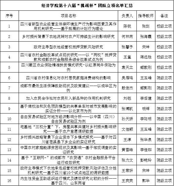 根据校团字〔2018〕13号《关于举办第十六届“挑战杯”全国大学生课外学术科技作品竞赛校内预选赛的通知》,经学生申请、答辩,学院教师团队评审,产生ylzzcom永利总站线路检测第十六届“挑战杯”立项团队汇总名单,现予以公示。公式时间:2019年3月30日—4月3日,公式期间如有异议,请联系ylzzcom永利总站线路检测团委办公室:028-86291370。