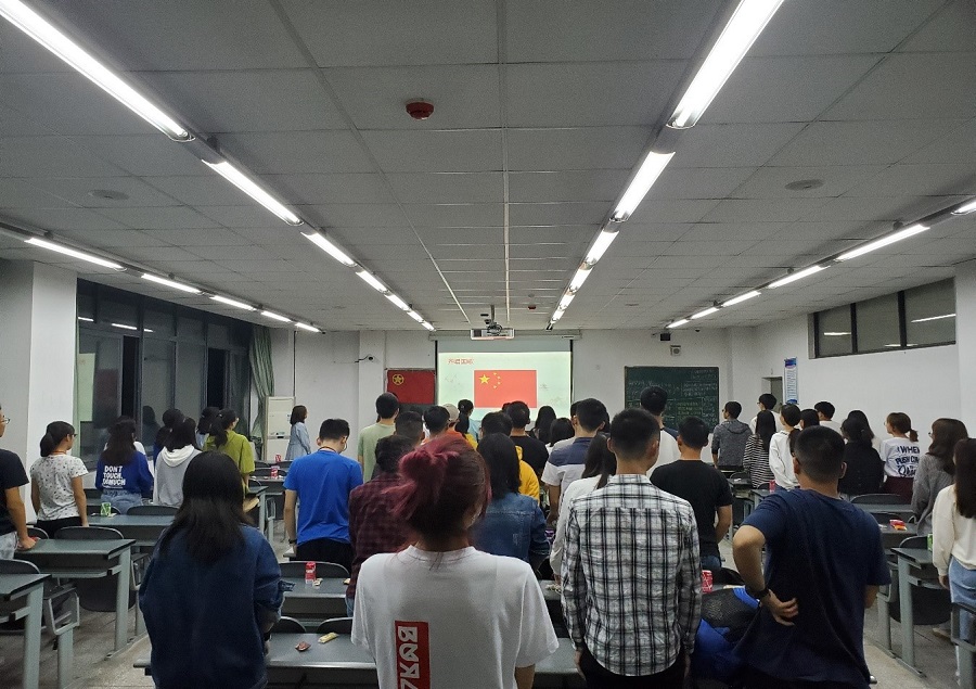 情景剧结束后,进行了“庆祝中华人民共和国成立70周年——我与祖国共奋进”主题分享交流会,大家踊跃参加,阐述自己对于爱国的观点。很多同学表示,做好自己的本职工作就是爱国,作为大学生,我们的本职工作就是学习,只有现在好好学习,积累知识,才能对人民有所奉献,对国家有所裨益。