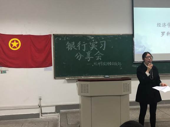 曾诚成就银行实习团队队员所担任的职位及其具体工作,以及参加银行实习的意义等做了分享。他指出,银行实习不仅可以丰富大学生活,学以致用,而且可以成为我们进入社会的一个缓冲和过渡,提高我们适应社会的能力。