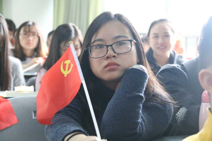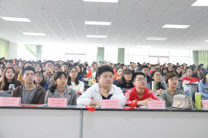 会上,党员们佩戴党徽,同学们挥舞着党旗,以蓬勃的青春朝气、昂扬的精神面貌观看了开幕式。会场气氛庄重而热烈,师生时而认真聆听,时而拿起笔记下关键词句,多次不自禁的爆发掌声。
