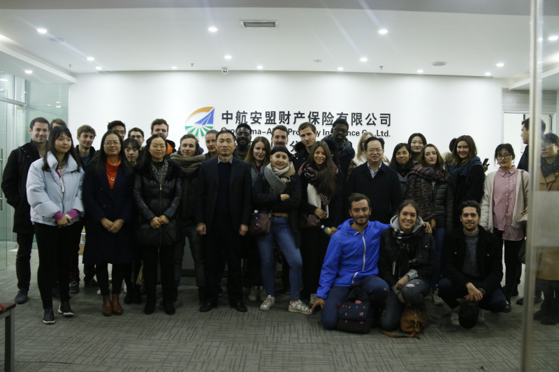 12月6日,ylzzcom永利总站线路检测“中国商务拓展”项目的26名法国交换生在国贸系主任沈倩岭副教授的带领下赴学院实践基地——中航安盟财产保险有限公司和老外Here两家外资公司进行参观交流。