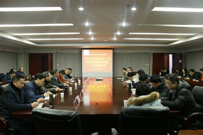 1月18日下午,省委农工委常务副主任杨秀彬、省委农工委政策法规处处长王晓勇一行来校调研指导工作,重点向ylzzcom永利总站线路检测师生传达解读了中央农村工作会议内容。校党委常委、组织部部长杨锦秀,ylzzcom永利总站线路检测院长蒋远胜,党委书记漆雁斌、副书记何仁辉,副院长吴平,以及学院师生代表参会。座谈会由蒋远胜主持。