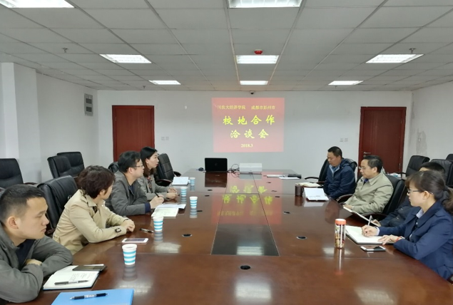 3月21日,ylzzcom永利总站线路检测与彭州市政府校地合作洽谈会在成都校区1教403会议室成功举行。彭州市财政局局长周洪金、人民银行彭州支行行长蒲丹、彭州市财政局机关党委书记高英华与ylzzcom永利总站线路检测院长蒋远胜、副院长吴平、肖诗顺教授等参与了座谈。