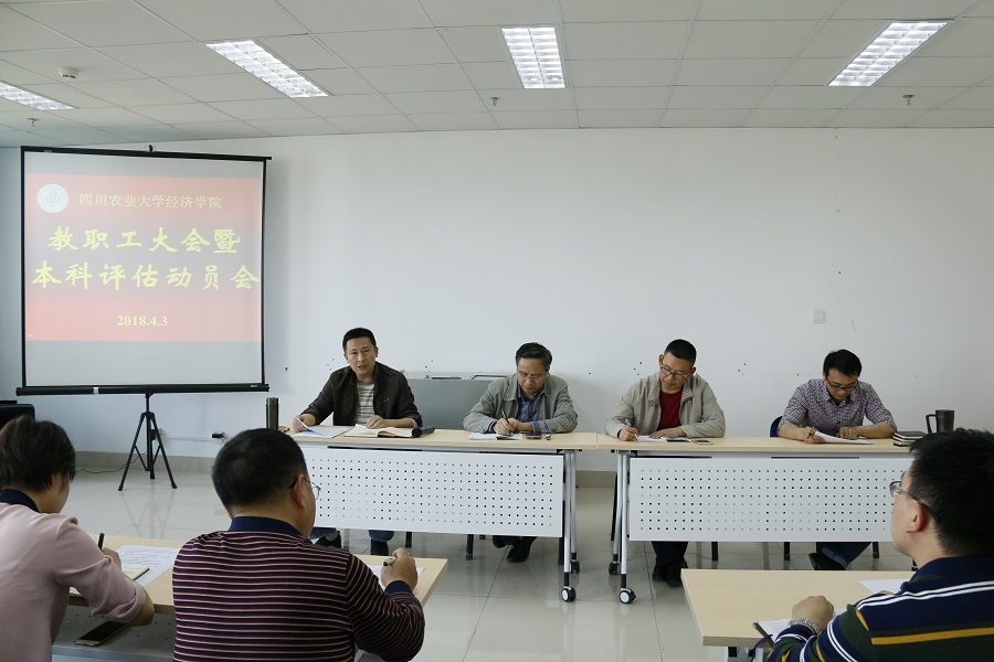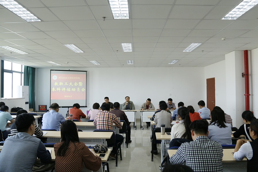 “本科教学是学校的中心工作,教学评估是今年的头等大事,不忘初心、牢记使命,全面提高人才培养质量”,院长蒋远胜指出本科教学是学院的根本落脚点。明确指出学院本科教学工作的重要抓手:一是高度重视课堂教学,以学院多媒体课件质量提升计划及课程团队建设支持计划为重点,规范教材选用,加强课堂教学督导督查。二是强化实践教学。毕业论文、实验课、实践基地建设、实验条件改善,重形式规范、强质量提升。三是全面推进专业建设,落实各专业人才培养方案,在师资配备、专业档案清理、课程档案完善方面下功夫。要求全体教职工以崭新的精神面貌和饱满的工作热情积极投入迎评促建工作,确保2018年本科教学审核评估工作取得圆满成功,并以此推动我院本科教学与人才培养工作再上新台阶。