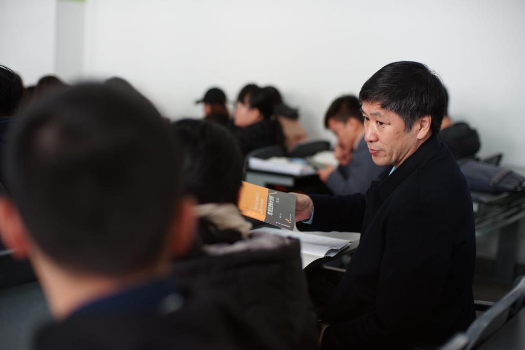 12月3日上午11时 《宏观经济统计分析》上课前,评估专家郭翔宇向同学询问课程情况
