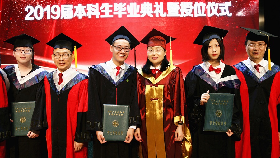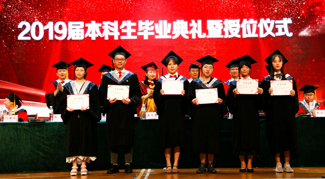 何仁辉宣读了《四川省教育厅关于2019届四川省优秀大学毕业生的通报》和学校《关于表彰2019届优秀大学毕业生的决定》,6名同学被评为省级优秀大学毕业生,28名同学被评为校级优秀大学毕业生。