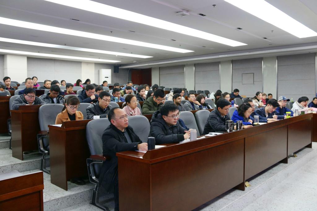 12月25日下午,学院2019年度处级领导干部述责述廉述党建大会在1教309会议室召开。学校党委书记庄天慧莅临指导,学院全体院领导和教职工出席会议,会议由学院党委书记漆雁斌主持。