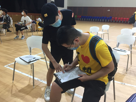 16日的一大早,1名博士生、2名研究生和8名本科生志愿者早早地返校,在简单收拾了行李后便赶往报到点接受培训,为后面的返校报到志愿服务做好充足准备。学院报到点也为每位志愿者配备了口罩、防飞沫面罩、消毒酒精、手套等医护用品,确保志愿者在安全的环境下开展志愿服务工作。
