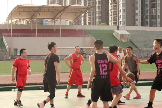 随着主裁判的一声哨响,比赛正式开始。刚进入比赛,毕业生队伍积极组织进攻,在篮板球上力压对手;教师队伍也不甘示弱,逐渐找到火热的手感,默契配合,紧咬比分。场上的气氛如同夏日的空气一般火热,两支队伍的情绪愈发高涨。在一番激烈的角逐以后,上半场毕业生以32:28的微弱优势暂时领先。