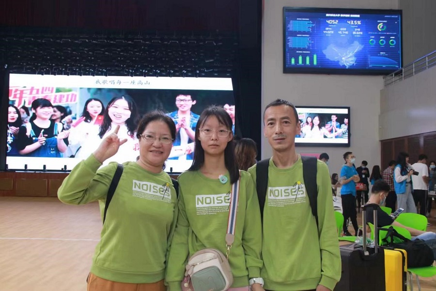 在家人的陪伴下顾玮第一次远离家乡来到了四川农业大学就读。镜头记录下他们一家三口身着亲子装的温馨时刻。