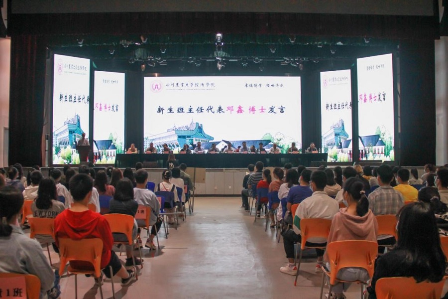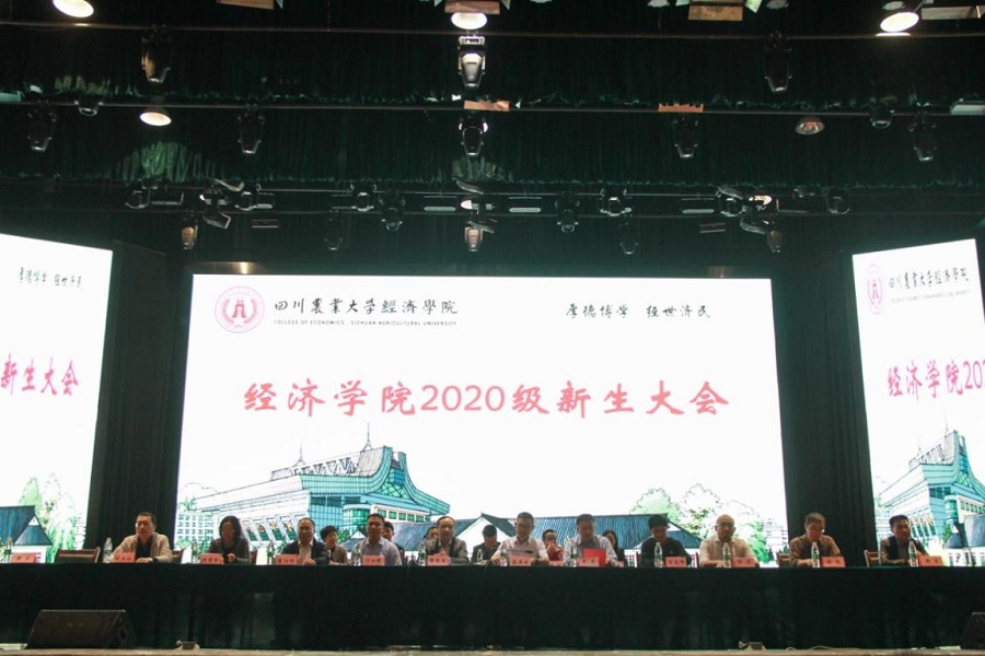 秋日暖阳,金桂飘香。9月30日上午,学院于麦立方隆重召开2020级新生大会。学院院长、四川省学术和技术带头人蒋远胜教授,学院党委书记漆雁斌教授,学院党委副书记、纪委书记、工会主席何仁辉老师,学院副院长、区域经济与金融研究所所长吴平教授和各系室正副主任、专业负责人以及2020级各新生小班的班主任、2020级全体新生参加大会。大会由蒋远胜院长主持。