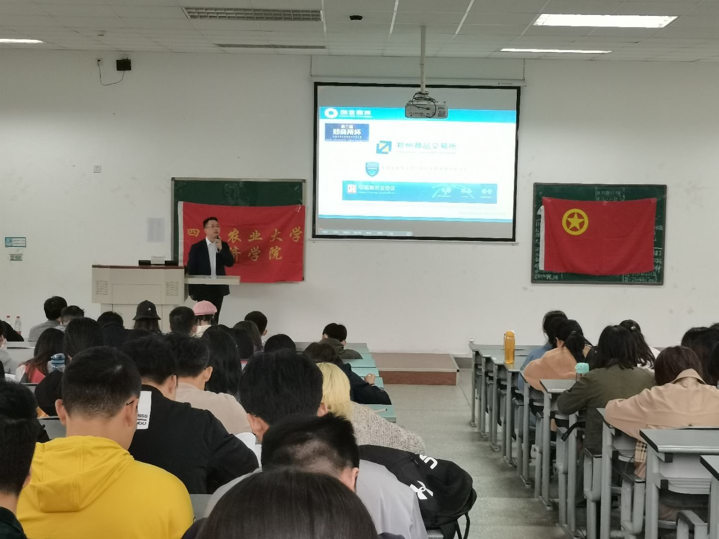 为培养ylzzcom永利总站线路检测学生的投资理财意识,锻炼学生将金融知识理论与实际相结合的能力,11月3日下午4点,在4-A208举办“期货知识进校园”暨第三届“郑商所杯”培训会,4-A202教室全程同步直播观看。活动邀请到了投资学系副主任李松老师、投资学系张帮正老师,国金期货资产管理部投资经理、“期货知识进校园”负责人戴小红先生,国金期货成都财富中心客户经理杜宇先生,国金期货成都财富中心客户经理杨启航先生。
