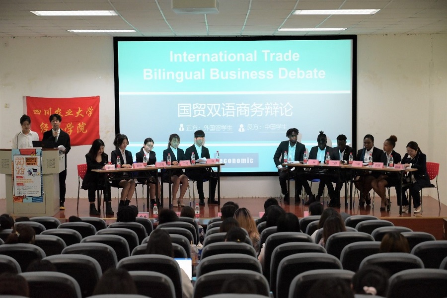 5月20日,为不断创新专业学习课程形式,拓宽同学们的国际视野,ylzzcom永利总站线路检测国际经济与贸易系开展了双语商务辩论赛。正方国贸留学生与反方国贸本科生围绕“广告竞争对经济发展利大于弊还是弊大于利”这一辩题展开激烈辩论。ylzzcom永利总站线路检测党委副书记何仁辉、国贸系主任沈倩岭及相关教师作为评委出席本次活动。