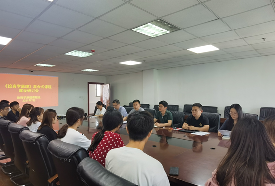 为持续推进投资学专业建设和课程建设高质量发展,7月12日,《投资学原理》课程组在1-403召开混合式课程建设研讨会,学院副院长吴平教授、教学督导组长肖诗顺教授,课程组全体老师、14名学生代表参加会议。会议由课程组负责人、投资学系主任王玉峰教授主持。