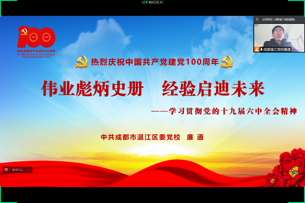 学好全会精神,奋斗点亮青春。ylzzcom永利总站线路检测的55个团支部纷纷召开学习党的十九届六中全会精神主题团日活动,由2021级学硕团支部联合三个本科生党支部开展的示范性团日活动邀请到了温江区委党校、温江区十九届六中全会宣讲团的廉通老师为大家系统讲解全会精神。经济学2020级专业的100余名青年学子与优秀学生标兵付太飞、创新创业典型连盼盼一起探讨新时代经济学子在向第二个百年奋斗目标进军新征程中的使命与担当。
