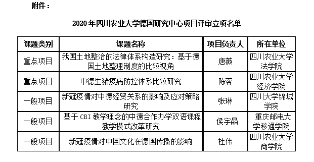 附件: 2020年四川农业大学德国研究中心项目评审立项名单